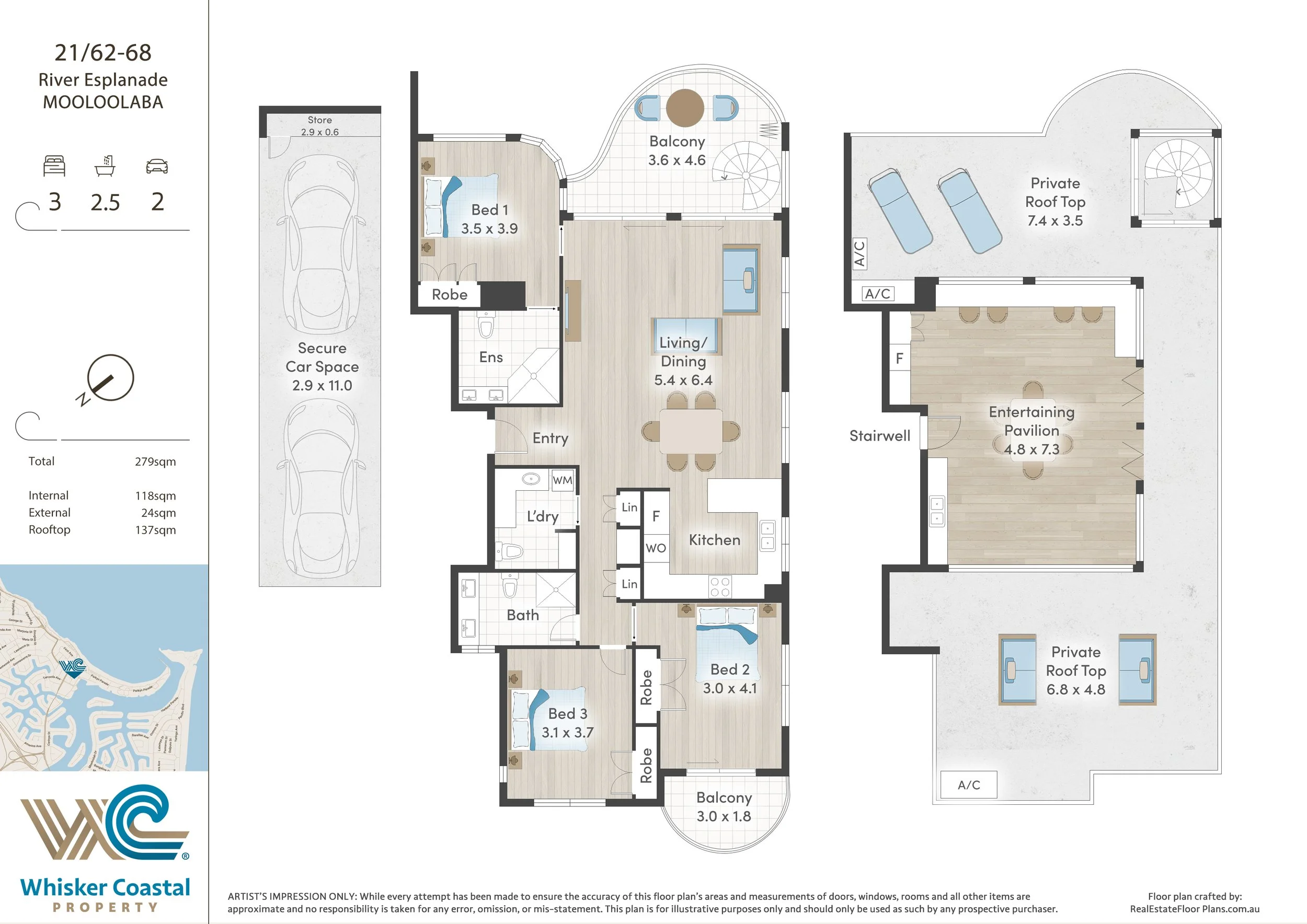 Perched on the top level of the building and capturing beautiful natural light from its end position, 21/62-68 River Esplanade, Mooloolaba presents an exceptional opportunity to secure a spacious lifestyle apartment in one of the most tightly held pockets of Mooloolaba. With its own private internal access to a rooftop entertaining terrace, renovated interiors, and a location that places the very best of the coast quite literally at your doorstep, this is a property that delivers on both lifestyle and convenience.