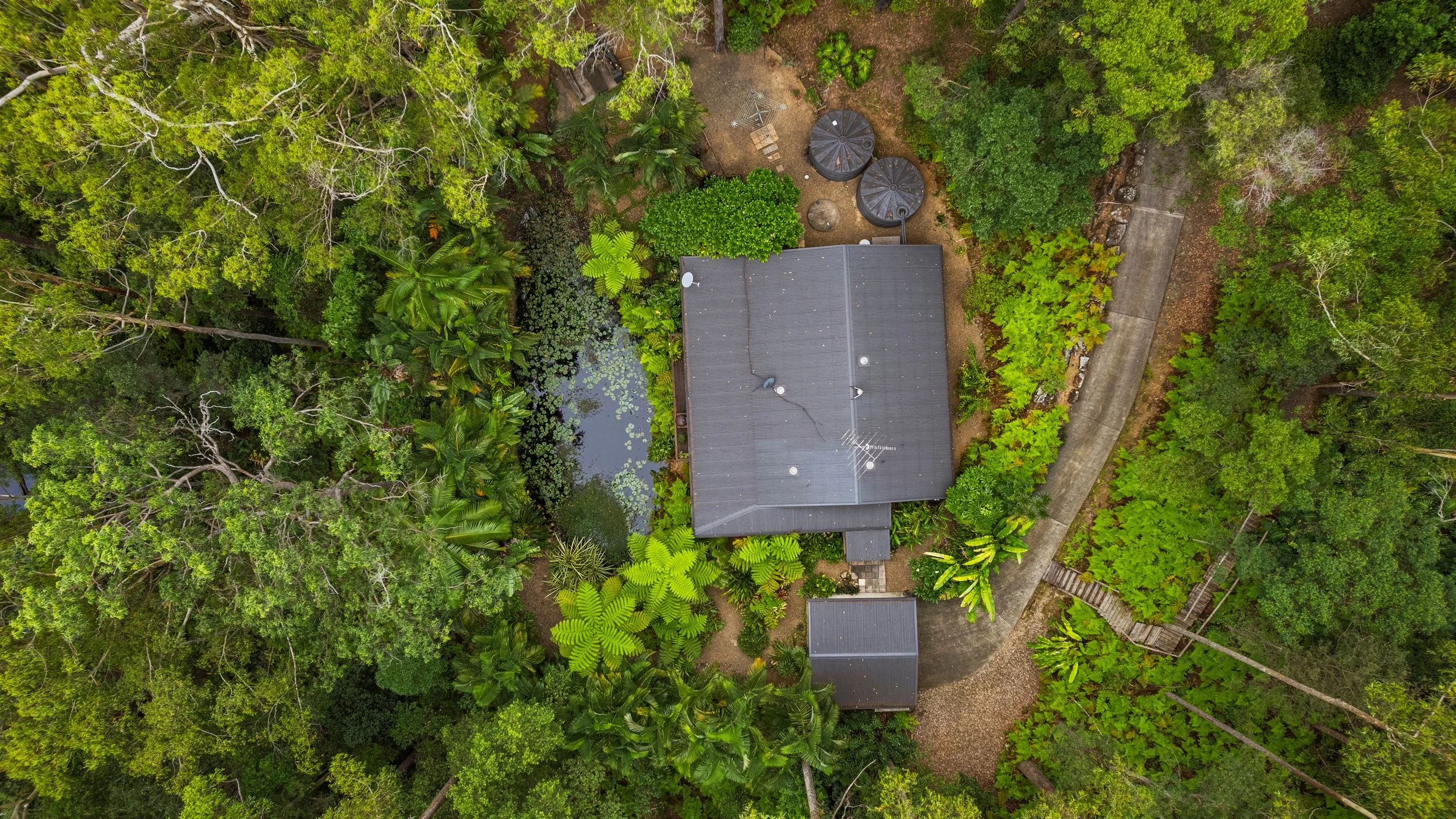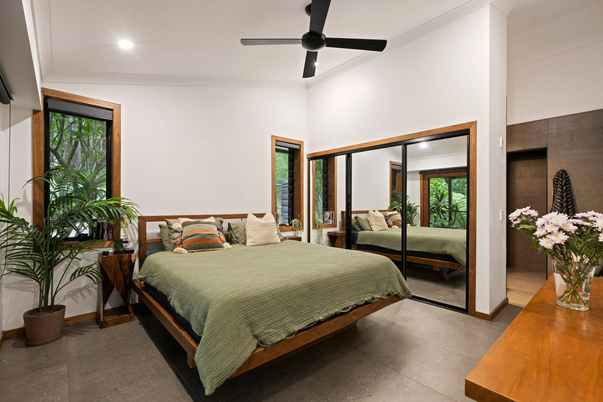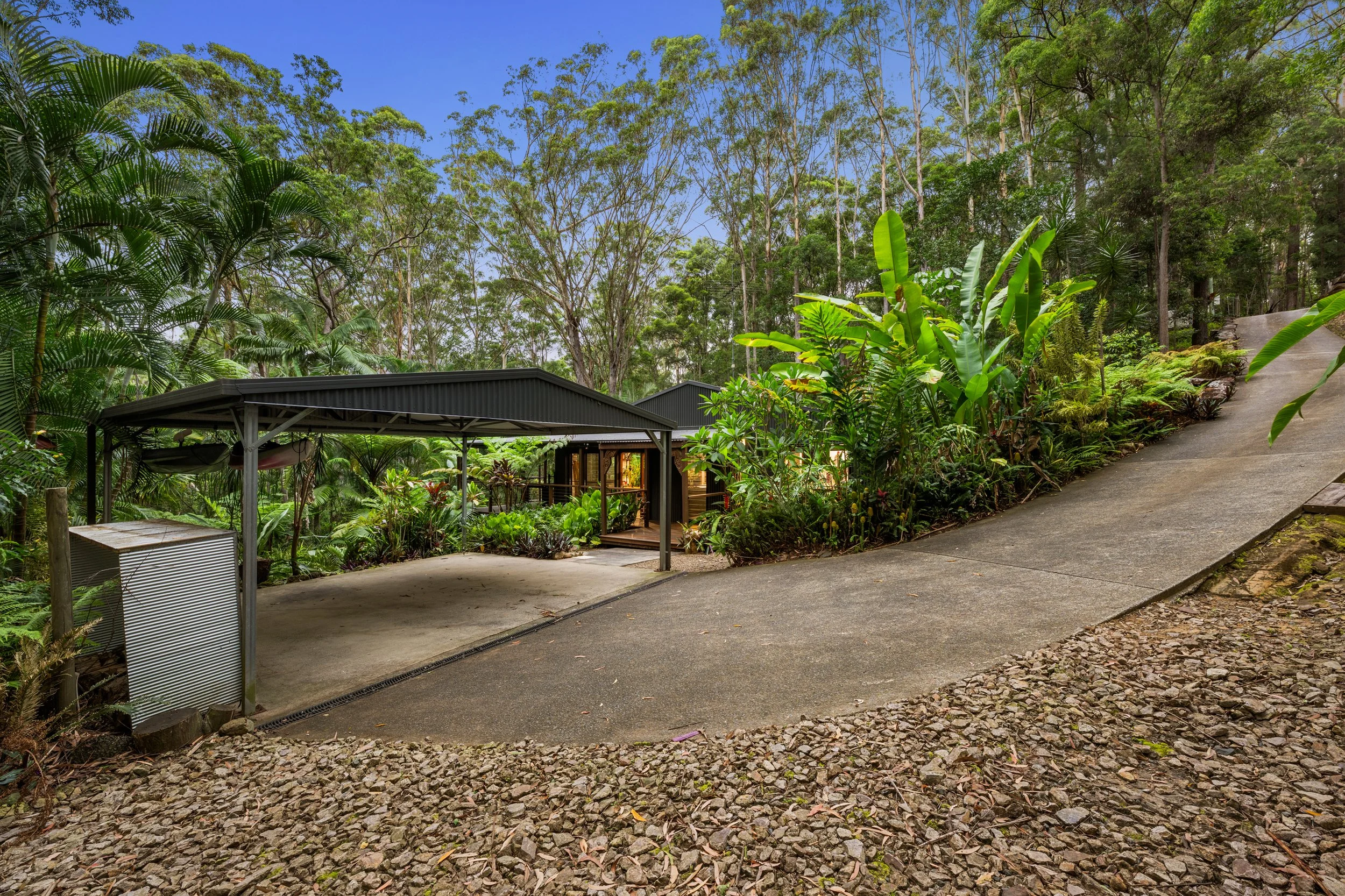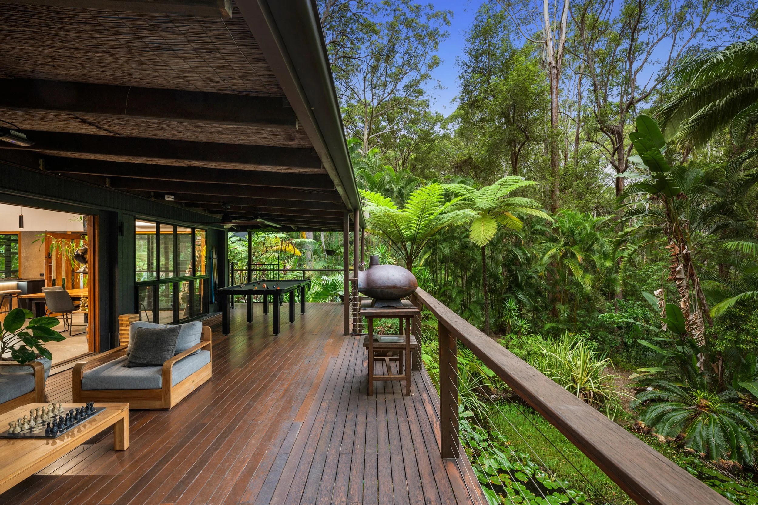 Tucked away on a private 4,000m² parcel in the heart of Ilkley, this breathtaking hinterland retreat delivers a rare sense of calm, space and escapism, all while remaining within easy reach of the Sunshine Coast’s beaches, schools and cafés. From the moment you arrive, the home feels like a sanctuary — tranquil, immersive and beautifully connected to its natural surroundings.