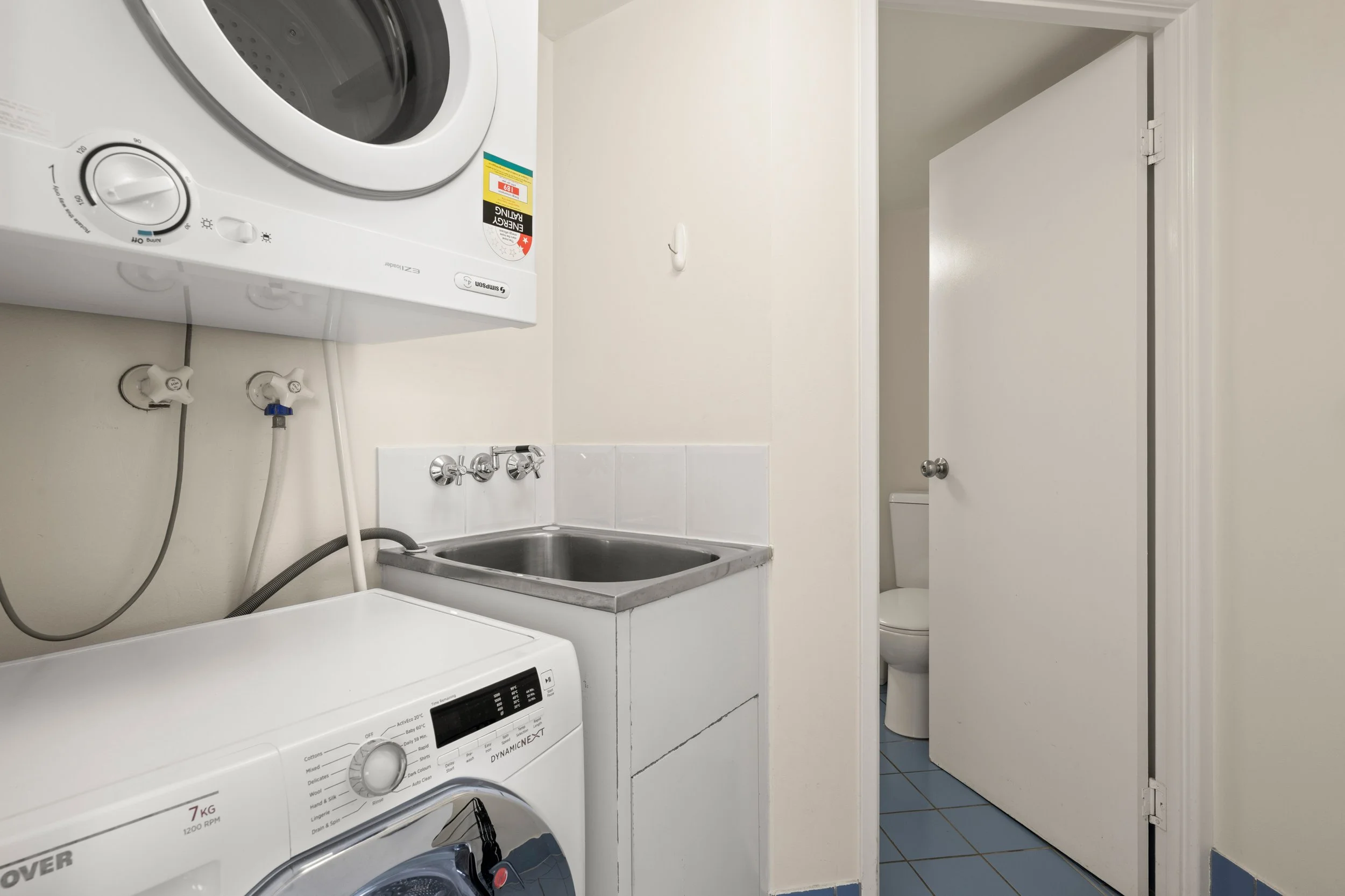 Separate laundry room with washing machine, dryer and sink.